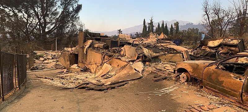 Altadena home and automobile destroyed in Eaton Fire. (Wikipedia photo)