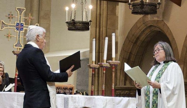 Bishop John Harvey Taylor welcomed those attending the diocesan Climate Evensong, created by seismologist Dr. Lucy Jones, senior warden at St. James, South Pasadena. Officiating was the Rev. Carri Patterson Grindon, rector of St. Mark’s Church in Altadena, which was destroyed in the Eaton fire.