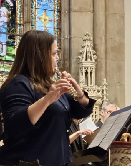The Rev. Michelle Baker-Wright plays flute as congregation sings the Lord’s Prayer in a musical setting she composed.