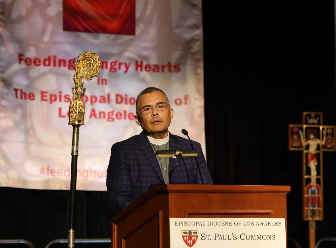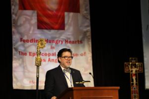 Amid a standing ovation and sustained applause, Gallardo addressed several hundred convention delegates, visitors and exhibitors, expressing gratitude in Spanish and English to all who made his election possible. He said he intends to “hit the ground running” in May 2026 after completing responsibilities at St. Luke’s/San Lucas Church in Long Beach, a parish well-known for its outreach to migrants and its unhoused neighbors. where he has served as rector since 2022.