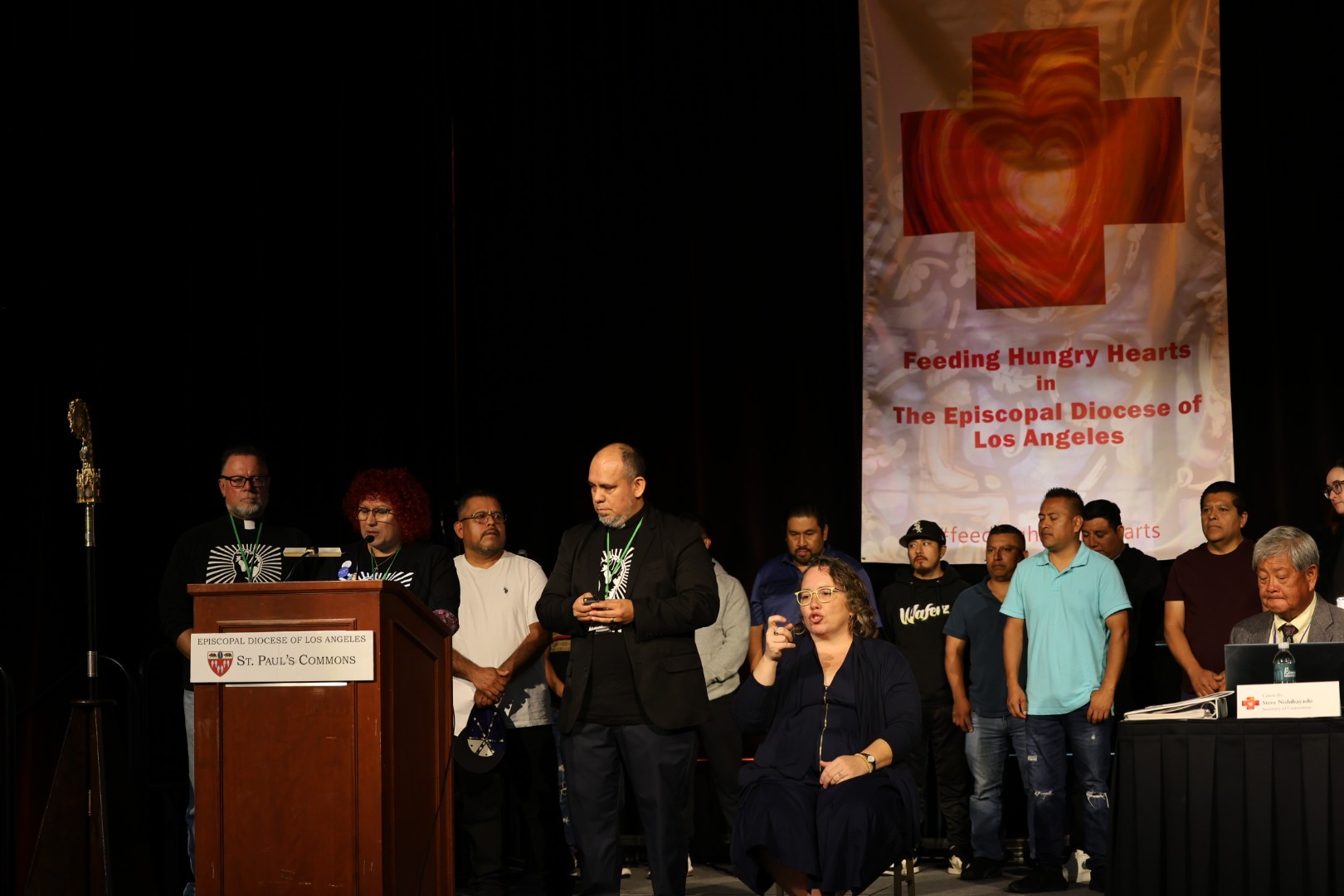Similarly, the Rev. Canon Jaime Edwards Acton, rector of St. Stephen’s, Hollywood, introduced several parishioners who suffered from the trauma of being kidnapped by ICE and held in detention centers. “We are dealing with family trauma, children’s trauma, concerns about how to pay the rent, how to pay utility bills, how to feed the kids, how to get diapers,” Edwards Acton said. “How will the kids get to school? To doctor’s appointments?
