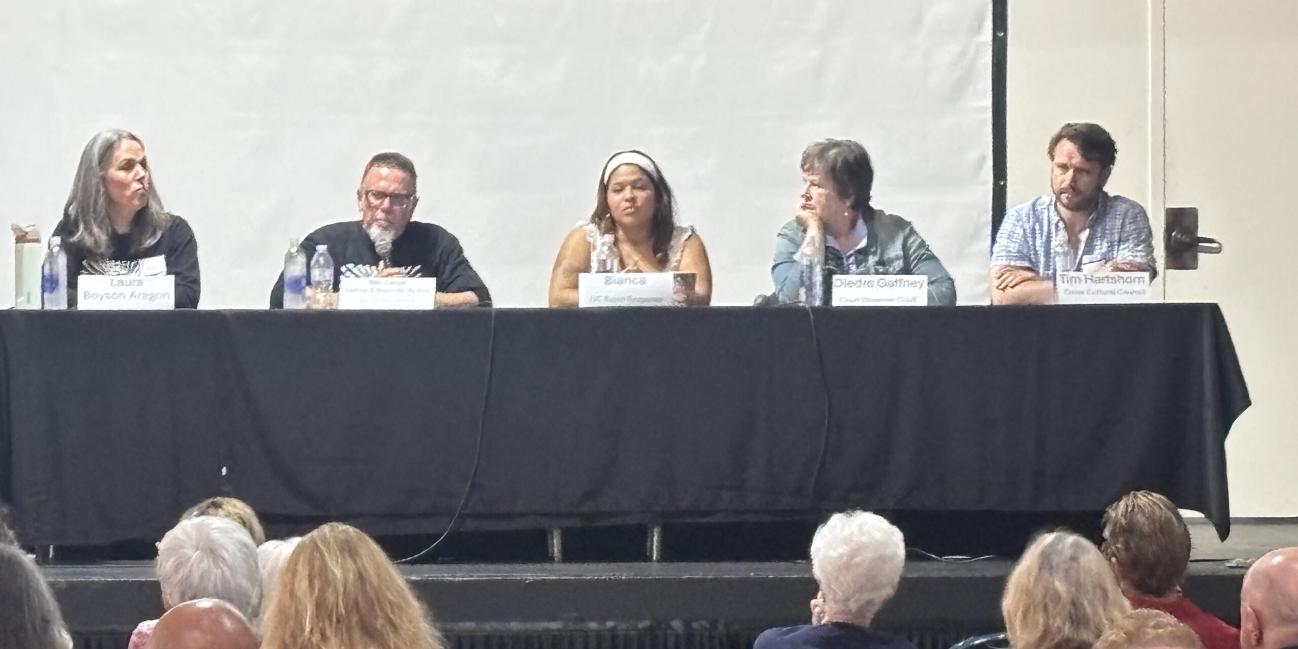 Edwards-Acton joined a panel of community activists, including Deidre Gaffney, of Clergy and Laity United for Economic Justice (CLUE) and an immigration court observer; “Bianca”, an Orange County Rapid Response Network organizer and Tim Hartshorn, executive director of the Laguna Cross-Cultural Council.
