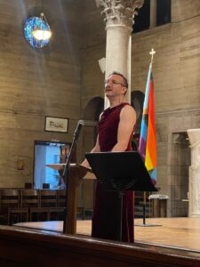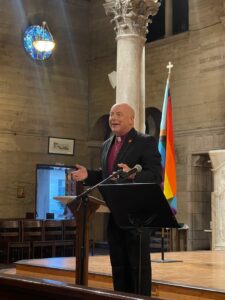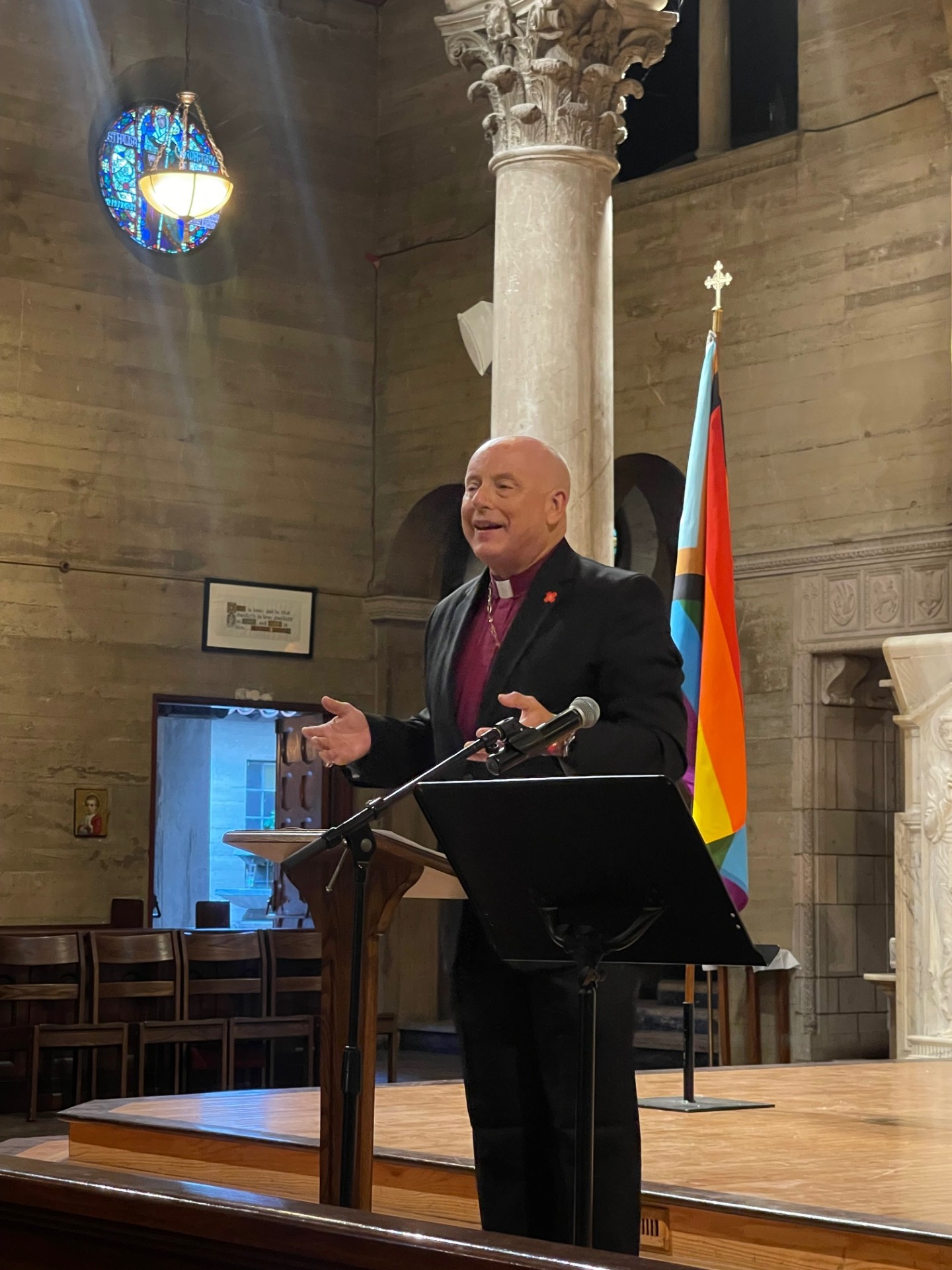 Marriage equality may even be threatened and “conversion therapy is back on the table as the heretical nationalists, misappropriating the name of our Lord, try to overturn bans on this inhumane practice state by state. So our work this Coming Out Day is to come out into the streets and join them, as Canon Russell said, in the breach,” Taylor said.