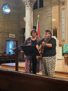 Music was offered by Jess Grace Garcia and Jennifer Dewitt. Garcia invited the congregation to come forward to hug, and clap and join in singing as the service concluded: “I’m gonna keep on a-walking, I’m gonna keep on a-talking, marching up to freedom land.”