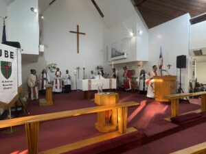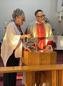 National Union of Black Episcopalians Treasurer joins the Rev. Guy Leemhuis in leading “Libations of the Ancestors” litany.