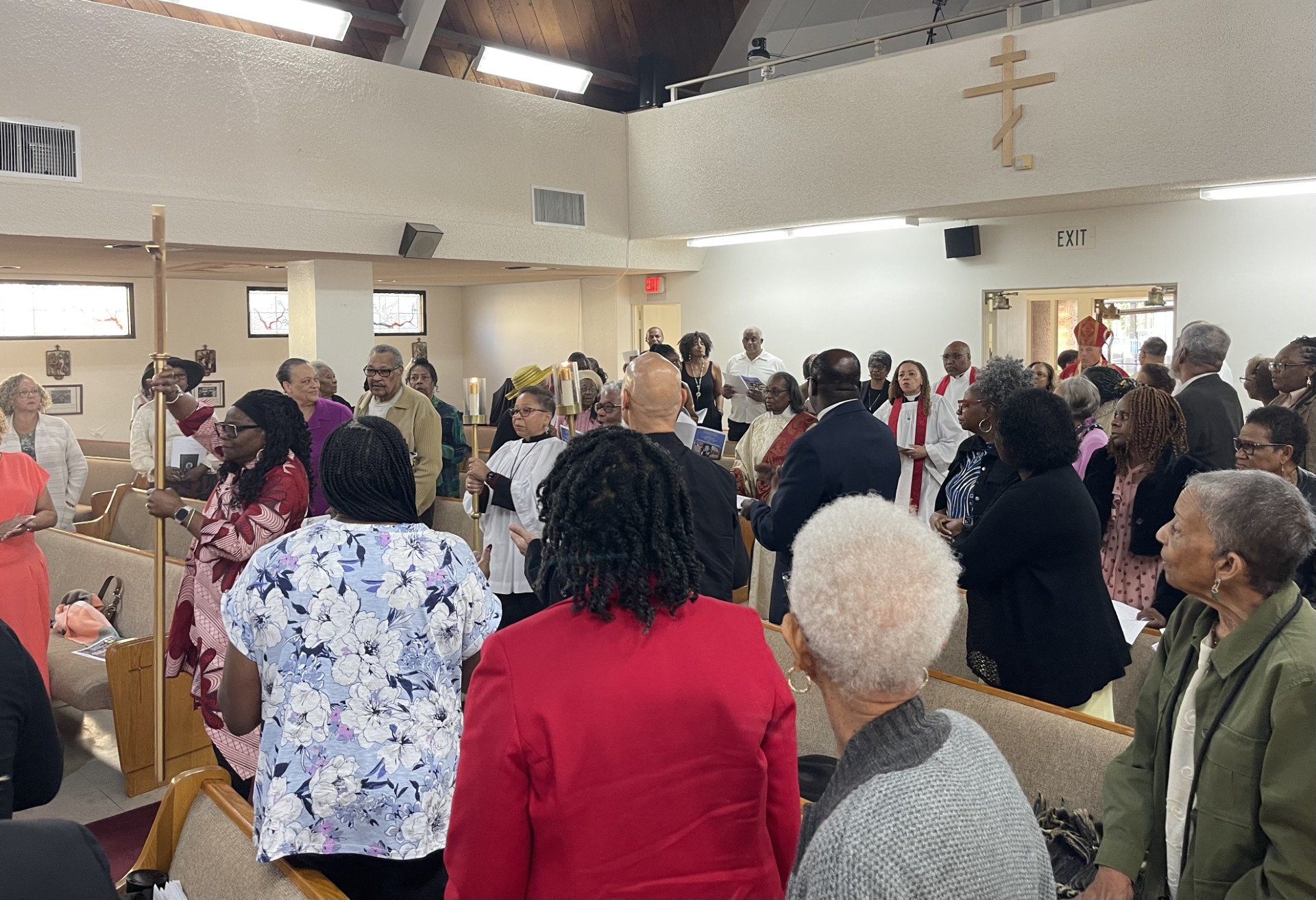 Welcoming those attending the gathering at Christ the Good Shepherd Episcopal Church in Los Angeles, were Bishop John Harvey Taylor; Canon Suzanne Edwards-Action, chair of the diocesan Program Group on Black Ministries; the Rev. Guy Leemhuis, chair of L.A.’s H. Belfield Hannibal Chapter of the Union of Black Episcopalians; and the Rev. Susan Anderson-Smith, priest-in-charge of Christ the Good Shepherd, located in the Leimert Park neighborhood.