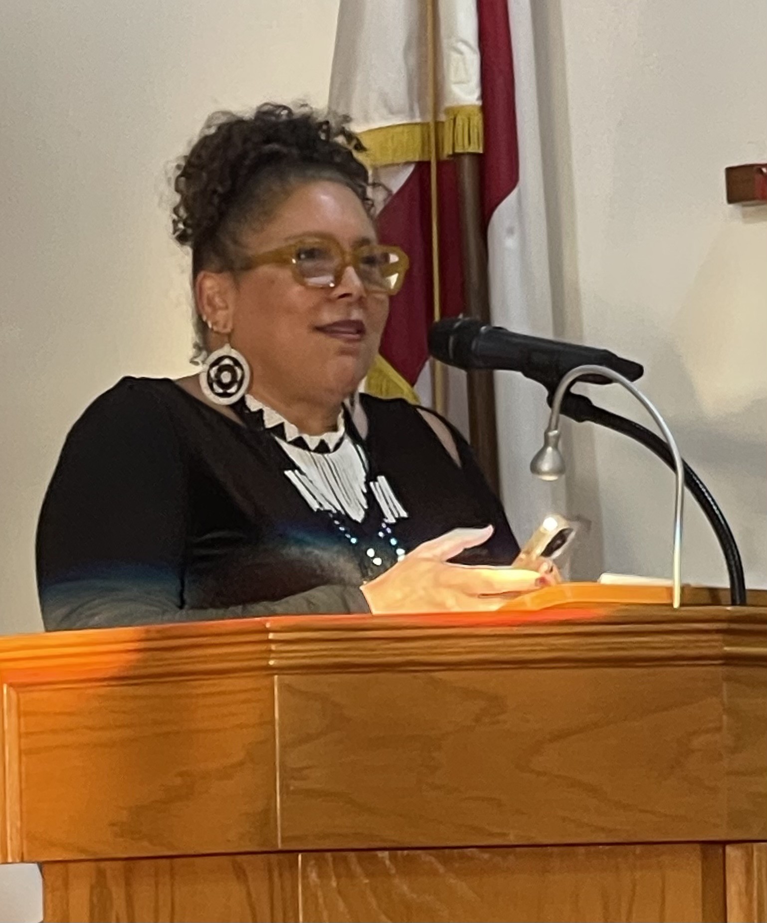 Canon Suzanne Edwards-Acton, chair of diocesan Program Group on Black Ministries, shares insights at MLK Eucharist.