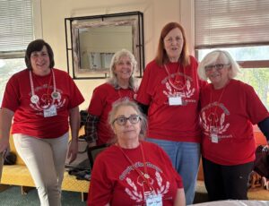The L.A. delegation, from left, Tammy Smecker-Hayne (diocesan UTO coordinator and member of St. Andrew’s, irvine); Martha Estes (past diocesan and provincial ECW President, and member of St. Columba Spirit of Peace, Big Bear), Christine Budzowski (diocesan ECW President and Provincial Secretary-Treasurer, and member of St. Luke’s, Long beach), and former L.A. diocesan delegate Linda Hughes (now in Oregon), Seated, Barbara Harris (Trinity, Redlands)