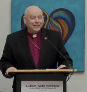 Bishop John Harvey Taylor invoked the golden rule as he called for an “All-Faith Democratic Union” to actively protect human rights, when welcoming faith leaders to “A Multi-Faith Response to Our Current Constitutional Crisis” March 11 at St. Paul’s Commons in Los Angeles.