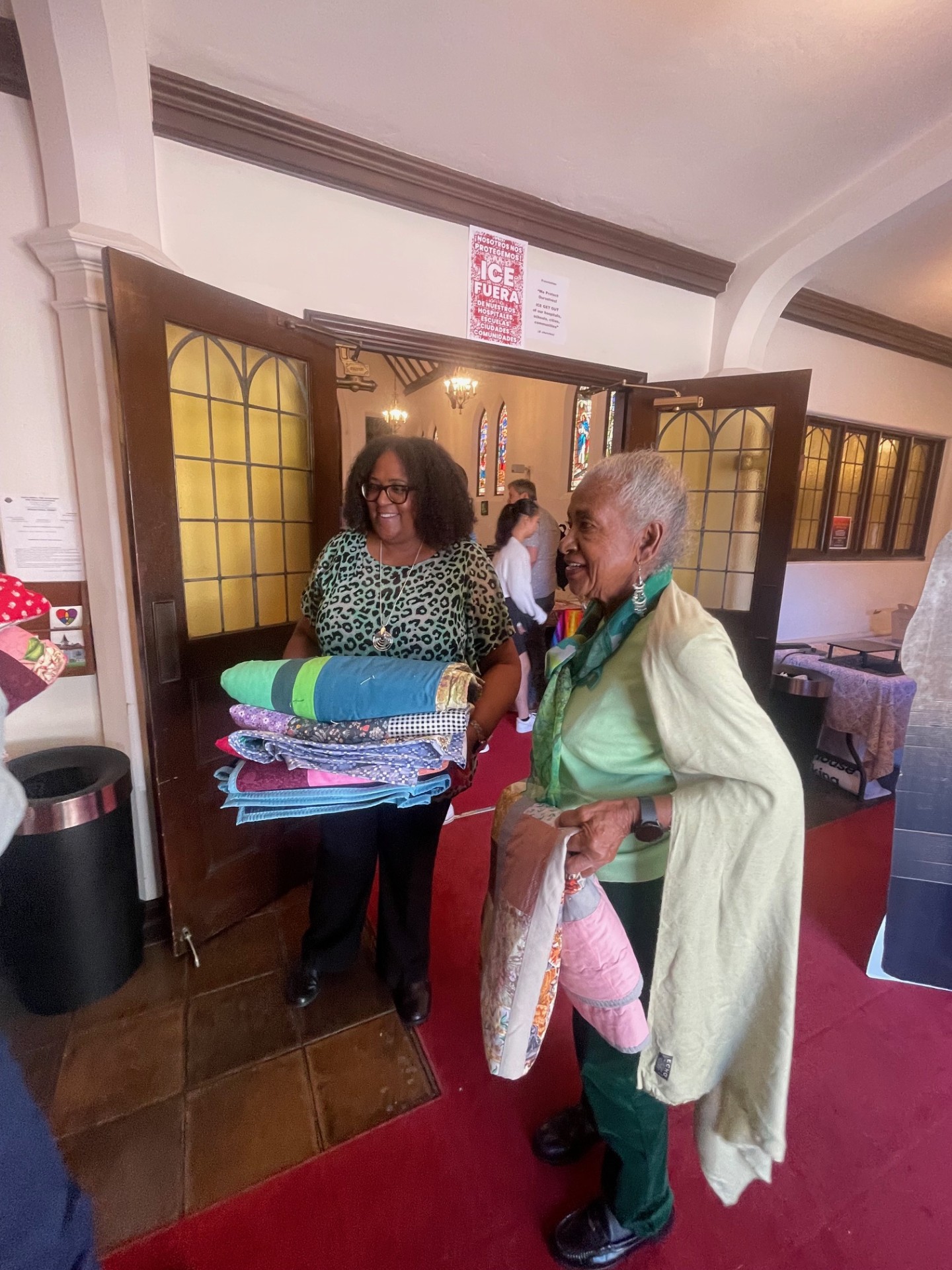 Seventy-eight quilts created by the “Piecemakers” group at St. Paul’s Lutheran Church in Santa Monica are on their way to recipients in need of warmth – with special “ties that bind” provided by Canon Karen Uhler, longtime Episcopal lay leader and a past senior warden of St. John’s Cathedral.