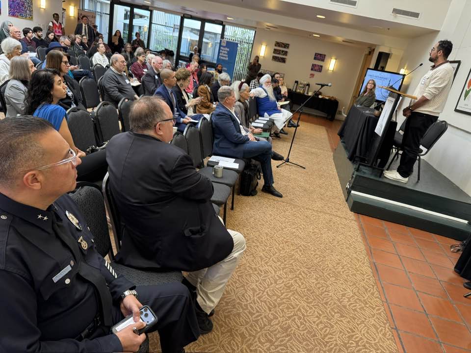 [My welcoming remarks and album from “A Multi-Faith Response to Our Current Constitutional Crisis” on Wednesday morning at St. Paul’s Commons, Echo Park. Other speakers were Dr. Lo Sprague of the The Guibord Center; Salam al-Marayati, president of the Muslim Public Affairs Council; former White House official Connie Rice of the Advancement Project; Mike Downing, former LAPD deputy and interim chief; the ACLU’s Victor Leung; Nirinjan Singh Khalsa of the California Sikh Council; Rabbi Susan Goldberg of Nefesh; the Rev. Kirkpatrick Tyler, Parks Chapel African Methodist Episcopal Church; and Jacquelyn Dupont-walker, director, A.M.E. Social Action Commission.]