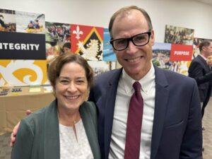 You meet the most amazing people around the Episcopal Diocese of Los Angeles, including Head of School Laura D. Ross and President Rick Commons of Harvard Westlake School, on whose board I sit (and pray over at the start of board meetings); I snapped this photo during our fall meeting, when I also looked in on the middle school orchestra, making like the LA Phil…along with Kathy Hannigan O’Connor at the annual Hope Through Housing gala at the Rancho Cucamonga headquarters of our affordable housing partner National CORE: Public affairs executive William Diepenbrock (an old friend from his days at the Orange County Register), the Rev. Michael S. Bell of Episcopal Communities & Services, and Greg Marshall of Saint Ambrose Episcopal Church in Claremont, finalizing plans for their housing project; and with Michael, CEO Rebecca F. Clark of Linc Housing, another leading nonprofit developer…at our annual diocesan staff recognition luncheon at St. Paul’s Commons, Echo Park, Martha Macias, honored for five years of devoted service, Canons Anilin Pulido Collado (35 years) and Clare Zabala-Bangao (25 years), and Ruben Tomasian (ten years)…and at the annual UC San Diego alumni/ae awards dinner in Los Angeles, honoree (and my Muir College ’80 classmate) Jamie Montgomery of The Parish of St. Matthew in Pacific Palisades; after presenting Jamie’s award, Chancellor Pradeep K. Khosla (who said that five of our fellow alums, not including us, received Nobel prizes this year) called up Jamie’s spouse, Annabel, namesake of Annabel’s Kitchen at the university’s new crafts center.