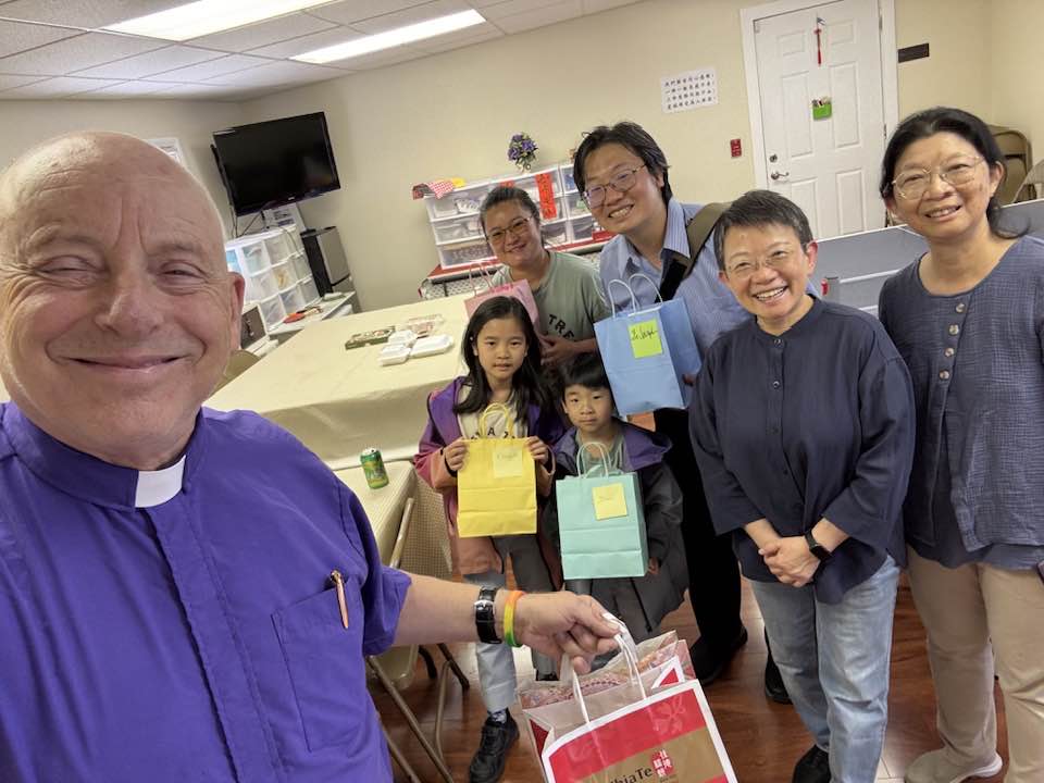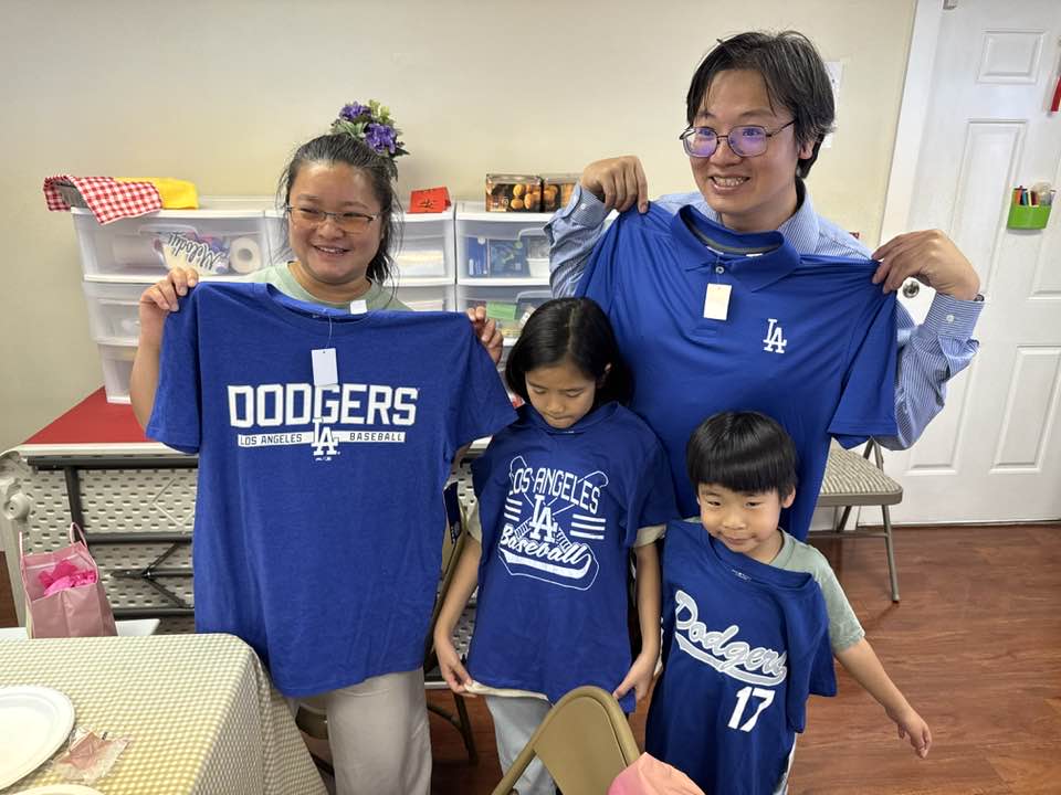 The family flies home at midnight tomorrow, after Palm Sunday services. On Friday afternoon, the devoted St. Gabriel’s priest in charge, the Rev. Canon Ada Wong-Nagata, organized an impromptu social hour at the parish for our visitors, the Rev. Dr. Fennie Hsin-Fen Chang, and me. We enjoyed photos and videos of their sightseeing and of Elizabeth’s virtuoso violin playing. We sent them home draped in Dodger blue.