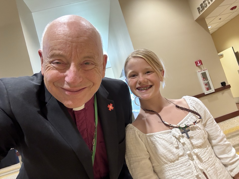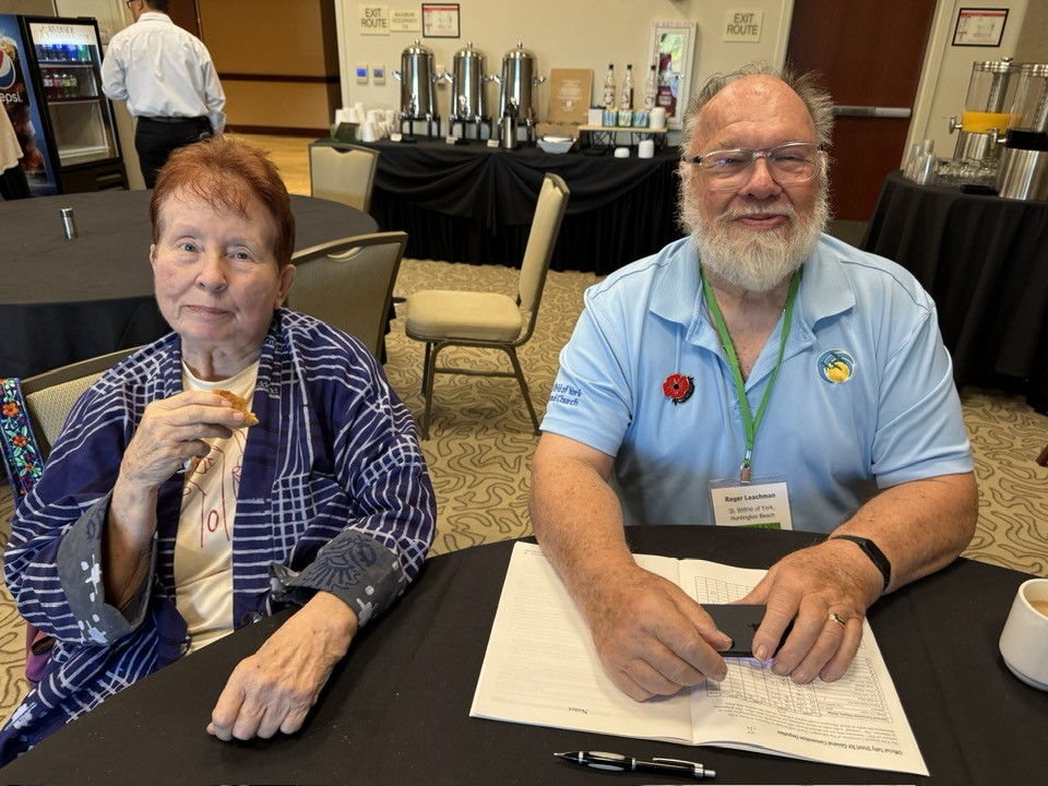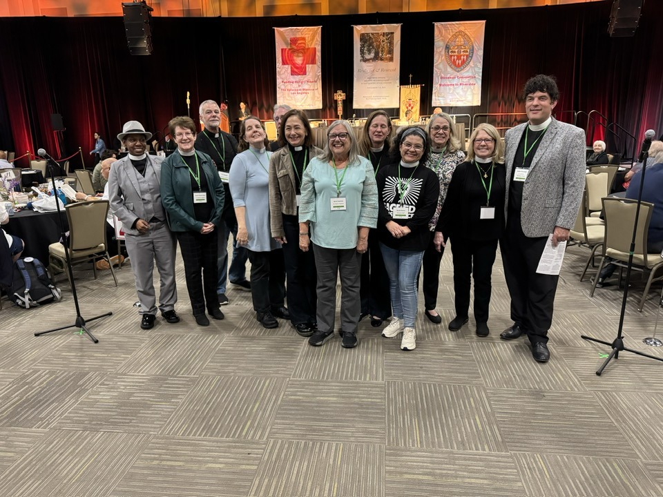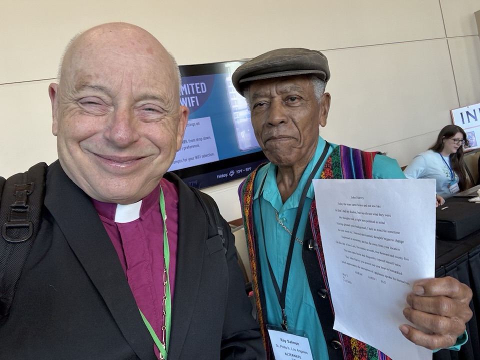(Photos: My scrapbook from the second day of business at diocesan convention at the Riverside Convention Center. The first photo shows Antonio and me in June at an anti-ICE demonstration at the federal building in downtown Los Angeles.)