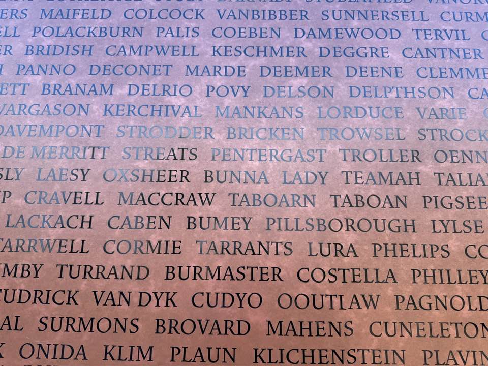 Once freed, many spent the rest of their lives trying unsuccessfully to track down their loved ones. Records were sketchy. Successive owner–abusers would often assigned people a new name. Today, thanks to EJI, you can search the surnames digitally. One of my best friends when I was growing up in Detroit was from a big family called Sewell. I learned that, in 1870, about 750 formerly enslaved people named Sewell lived in the U.S., some, probably, my friend Don’s forebears.