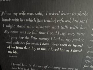 For now, the Smithsonian website reveals no evidence of additional interference by Trump, at least at the NMAAHC. But one thing’s for sure. His executive orders have no bearing on the content of the Legacy Sites. Washington would like to whitewash the story of slavery, but not Alabama. Those of us attending a National Association of Episcopal Schools conference on equity and justice visited the sites on Wednesday. It was my second visit to the Legacy Museum. The spine of its story connects slavery with Jim Crow with 21st century mass incarceration. The exhibits show how the false narrative of racial hierarchy, used to justify the unjustifiable, remains alive in the disproportionate rates of the imprisonment of people of color.