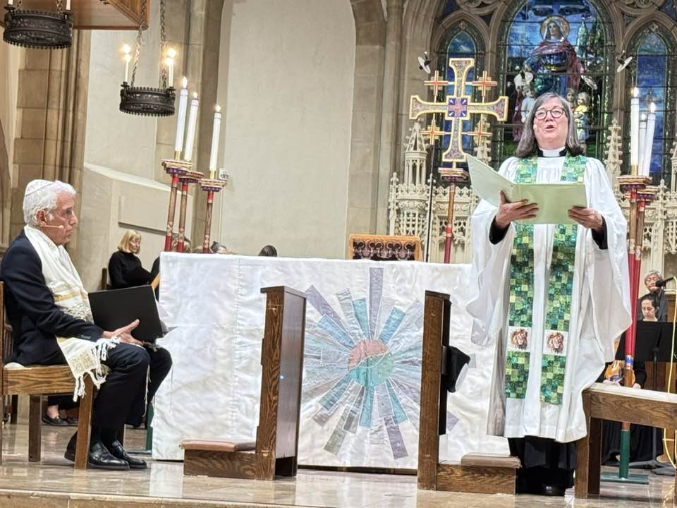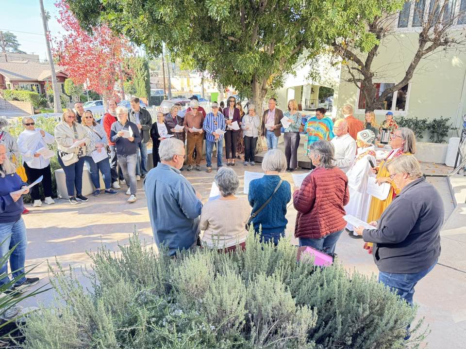 Over at All Saints Episcopal Church in Pasadena, nearly 100 individuals and families lost their homes. The church was full Sunday evening for an exquisite diocesan Climate Evensong envisioned by Dr. Lucy Jones featuring original music, including by Lucy, and a choir comprising voices from our hardest hit congregations. Carri, who had a long day, was again celebrant, chanting magnificent collects composed for the occasion: “Give us courage to name the harm we have done to your world, to grieve with our children and sibling species, and to work for the flourishing of our whole planet.” St. Mark’s’ longtime friend, Cantor Emeritus Mark Saltzman of Congregation Kol Ami, chanted the “El Malei Rachamim” and the names of 29 of our neighbors who died in the fires.