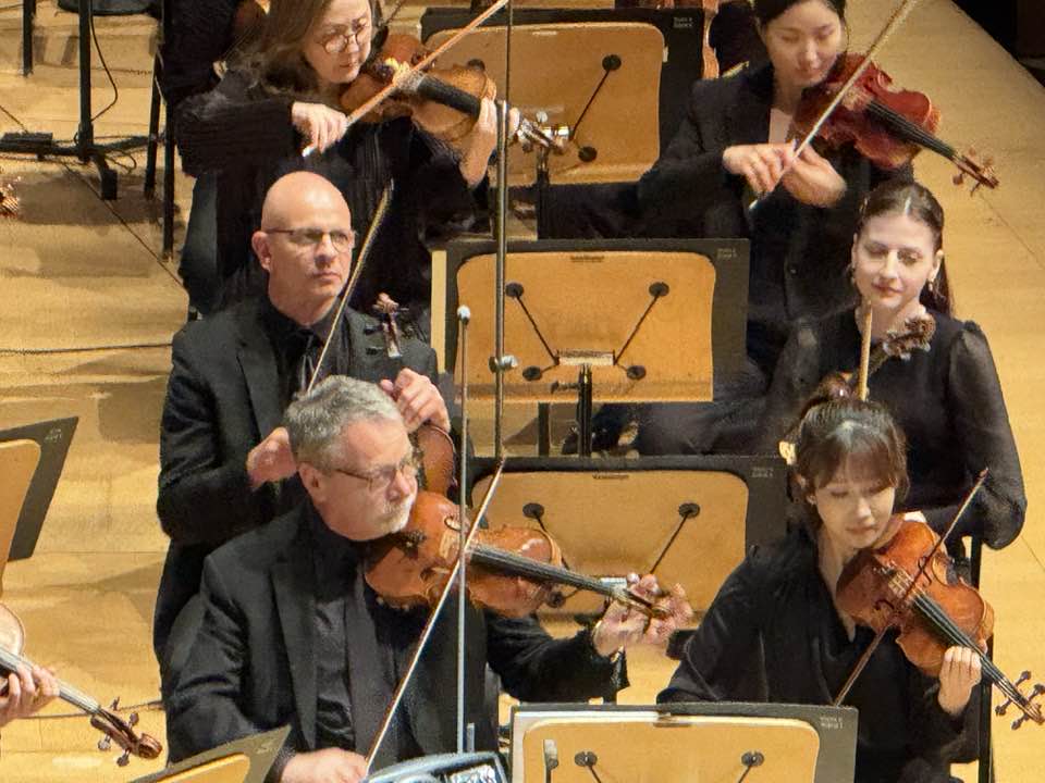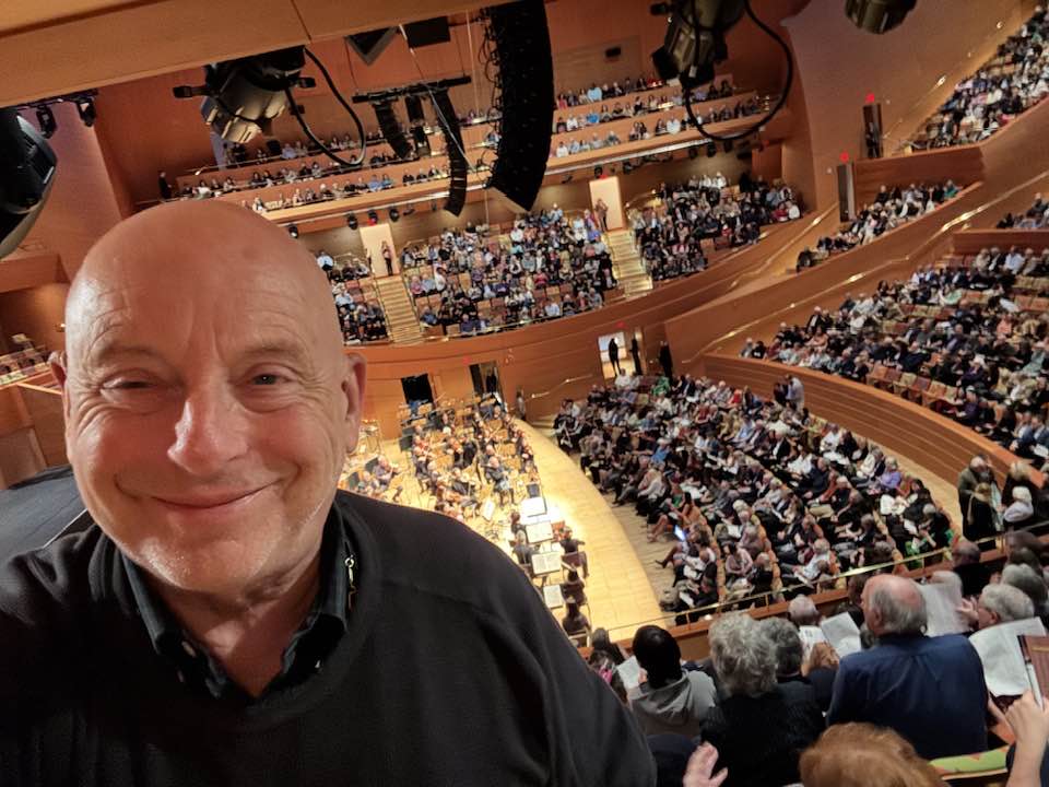 Working eight minutes away from Disney has been a blessing. Kathy indulges my going alone a few times a season and getting a fantastic seat, looming over the orchestra stage left. For my finale Thursday, I enjoyed the whole package, parking by 6:30 p.m. and having a salad and coffee in the café before reporting for the pre-concert seminar at seven. I even pre-ordered an intermission beverage.