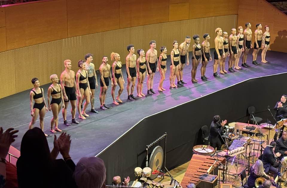 She told us that during the Glitter March in Mexico City in August 2019, since she was in Los Angeles, she had friends send her recordings from the scene. She wrote some of what she heard into the score, performed Thursday by members of the Los Angeles Master Chorale. The ballet corps comprised 22 members of Grupo Corpo, from Brazil. Ortiz said that the passionate music of Stravinsky was her principal inspiration. Her score and the choreography amply conveyed both agony and hope.