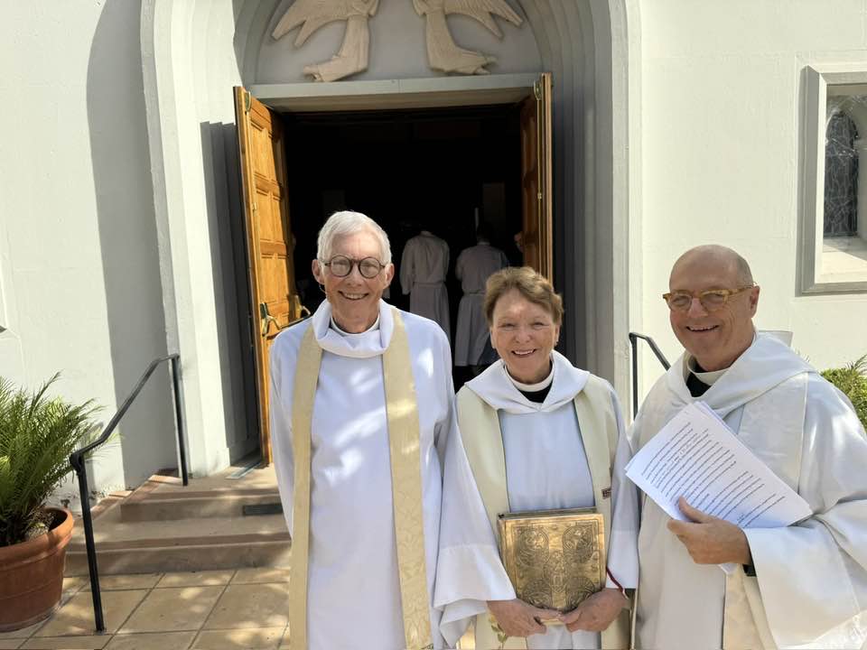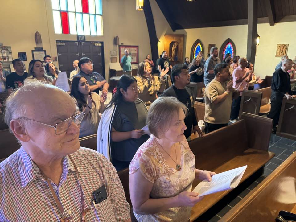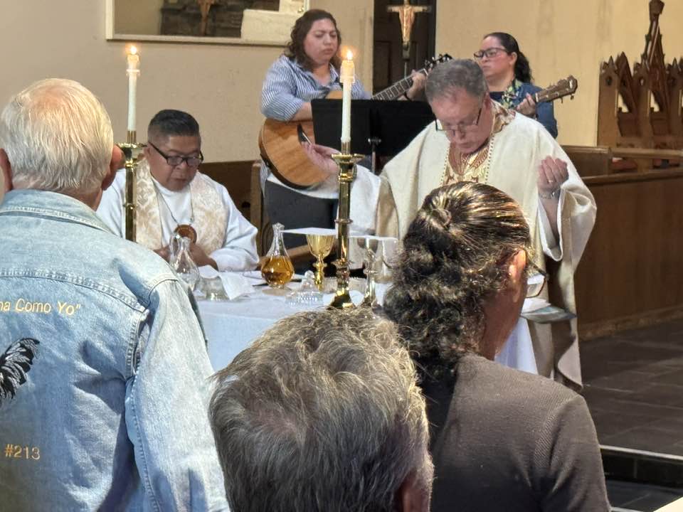 I got to the Episcopal Church of the Blessed Sacrament in Placentia just after the annual meeting of our diocesan Cursillo community had gotten underway midafternoon. Cursillo, meaning little course, is a three-day crash course in Christian discipleship, fellowship, and spirituality developed in the 1940s by lay Roman Catholics in Spain. The fourth day is the rest of the disciple’s life. Spanish is the movement’s first language. President Iván Gutiérrez Acosta of Iglesia Episcopal de La Magdalena in Glendale presided over the commission of the coming year’s lay leaders and joined a quartet of lay witnesses in lifting up their Cursillo experiences. The Rev. Jose Luis Garcia, who serves as my liaison to the movement, and the Rev. Barrett Van Buren, the Blessed Sacrament rector, were co-celebrants at Holy Eucharist. De colores!