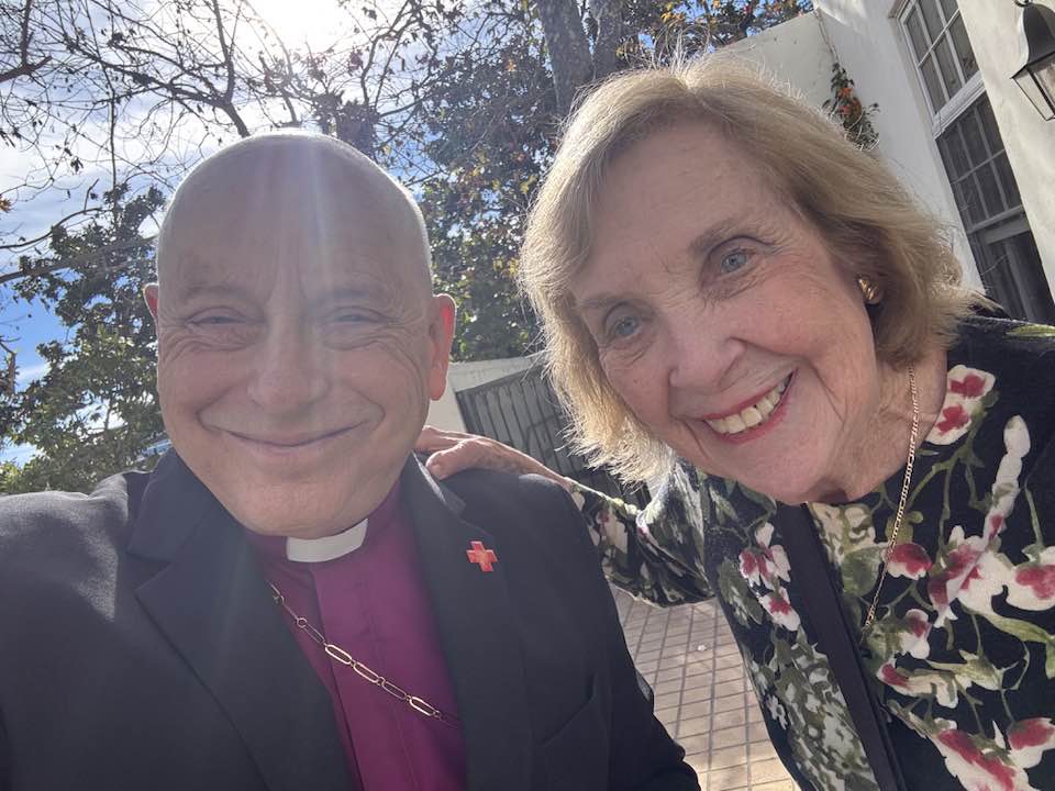 All Saints’ Beverly Hills bid au revoir to its beloved friend Jonathan Roberts, who died last month in the midst of a life filled with family, friends, faith and church (he was the devoted All Saints head verger), brilliant conversation, and joy. Eulogies by his spouse Dayna Lynn Roberts and friends for life Nate Hicks and Bryan Freud (Dayna’s brother, who introduced the couple) and a spirited homily from his former rector, the Rev. Stephen Huber, framed his life beautifully. Canon Craig Phillips and the All Saints Choir were magnificent as always. Graciously supported by the interim priest in charge, the Very Rev. Canon Gary Hall, I presided and took a moment to reflect on the ministry Jonathan and Nate shared as ministers of ceremonies at scores of deacons’ and priests’ ordinations at St. John’s Cathedral. At the reception, a former vestry member named Kathy told me she taught Humphrey Bogart’s two children in the All Saints Sunday school. His All Saints celebration of life in 1958 couldn’t have been more spectacular than Jonathan’s.