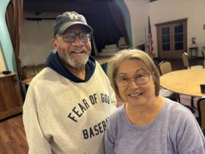 I talked first about the historical Jesus, thought to have been an artisan, with Joseph, working on Herod Antipas’ projects at Sephhoris, near Nazareth. These days pilgrims — such as the Rev. Jeannie Martz and Rocky Covill, Kathy’s and my companions in 2023, both aboard Thursday evening — can walk along excavated first century streets. I also talked about the companion who rides in the car with me, a stuffed doll with a deacon’s stole and perpetual smile, inviting the frankest possible prayers and conversations.