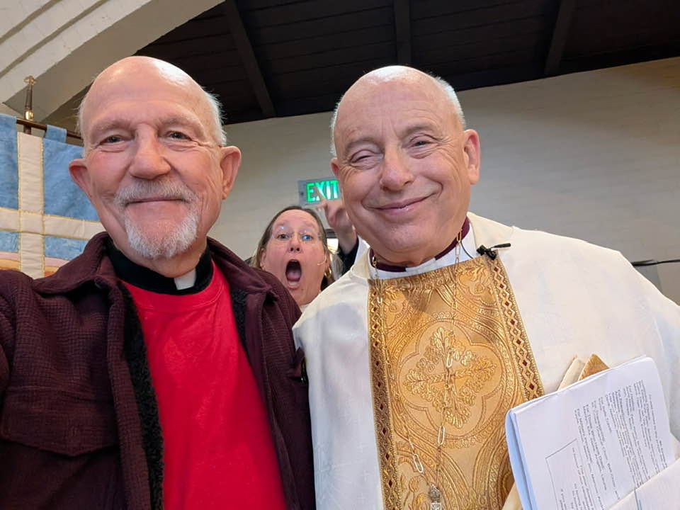 Most from this extraordinary corps of diocesan servants were among about 300 who worshipped Sunday at two services at St. Cross, where I had the privilege of presiding and preaching. As always, it was a joy to see the associate rector, the Rev. Dr. Michelle Baker-Wright, and the Rev. Patti Angelo, the devoted, gracious parish deacon. Rachel’s spouse, Chad Druten, was my patient chaplain at both services. The Rev. Canon Robert Cornner, retired rector of Christ Church in Redondo Beach and friend of St. Cross forever, was also aboard, along with the distinguished rector emerita of St. Michael’s Episcopal Church in El Segundo, the Rev. Dina McMullin Ferguson.