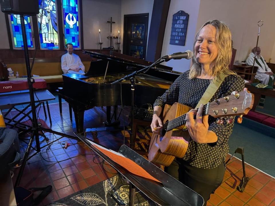 The ministry of fine arts at St. Martin’s isn’t just paintings. Always known for its beautiful music, on Sunday, we heard music director Christian D Stendel at the organ and piano, Suzanna Giordano Gignac on violin, Shahid Yasser Osuna on flute, and folk music star Claire Holley on guitar and vocals. Devoted parish administrator Paige Deary, for two or three years my fellow Detroiter, was also my kind chaplain.