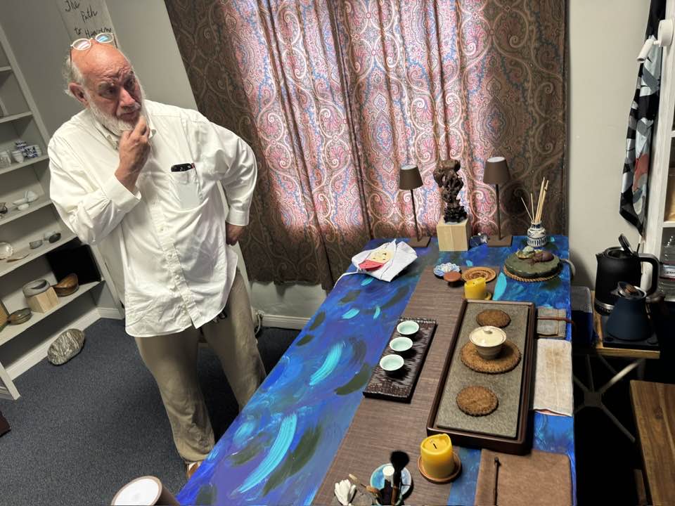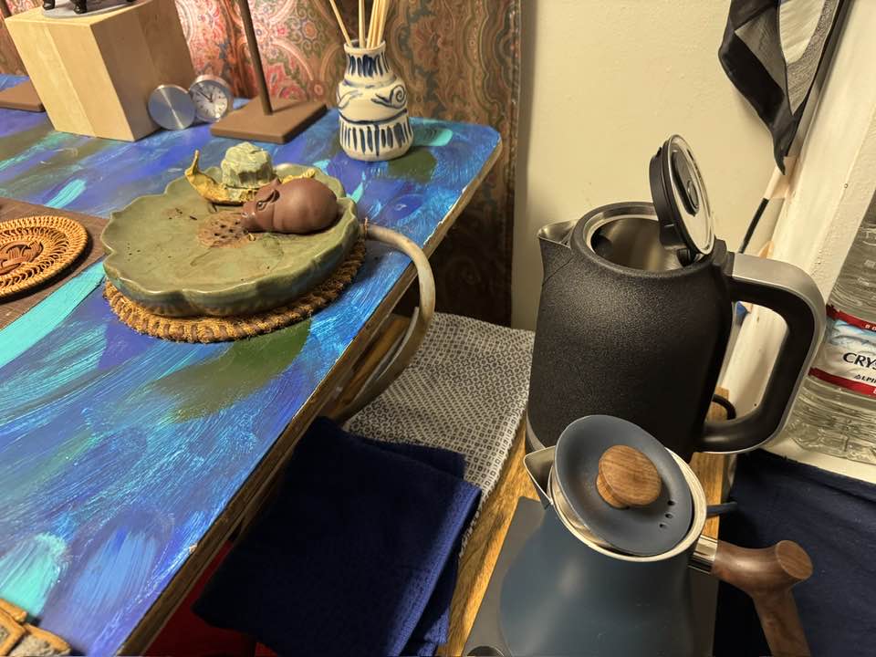 While everything at St. Martin’s is always in good proportion, the freshest sign is Gabri’s Chinese tea room. He showed it to me Sunday after services, where I had presided and preached, and after our delicious soft taco lunch and Q&A session with members of his congregation. Conversations with the vicar here can be 20 minutes or two hours, but one assumes, thanks to the calming appointments, that the talk tends to be as savory as the tea. Gabri said that it is considered impolite for two people to have tea ceremonially by themselves. In the photos, you will see a small hippo and snail who are always present and get the first portion each time.
